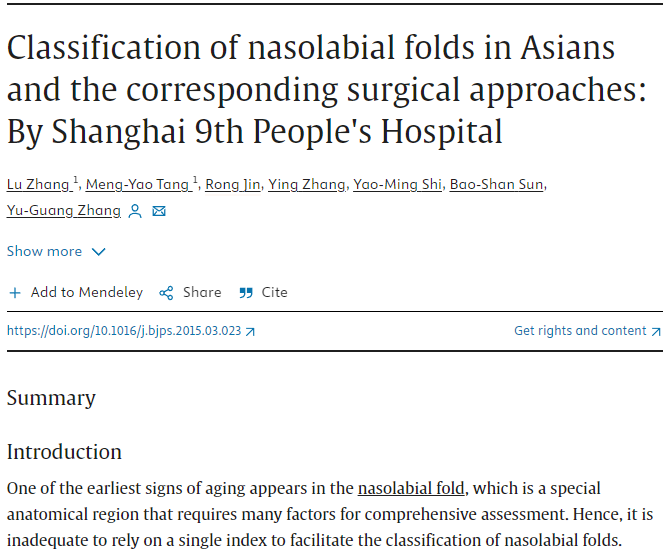 오늘 소개드릴 논문은 2015년에 중국에서 나온 논문으로 아시아인 약 900명의 환자를 대상으로 팔자주름의 특성을 관찰하고 원인을 분석한 논문입니다. 해외 논문도 많지만, 아무래도 동양인을 대상으로 한 논문이 조금 더 참고하시기 좋지 않을까 싶어 해당 논문을 참조하게 되었습니다.