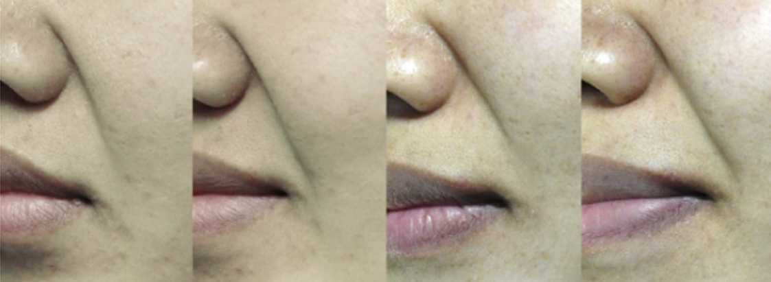 위의 사진들은 모두 동일한 사례의 사진이지만, 환자의 상황에 따라서 팔자주름이 다르게 잡히는 것을 보여주는데요.