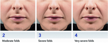 위 사진은 멀츠(MERZ)사에서 제공한 nasolabial fold classification(팔자주름의 심한 정도) 사진입니다.