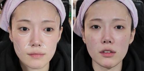 시술 전과 후의 변화를 조금 더 직관적으로 보여드리고자 얼굴의 좌측, 우측을 구분하여 한 쪽만 시술을 진행했습니다.