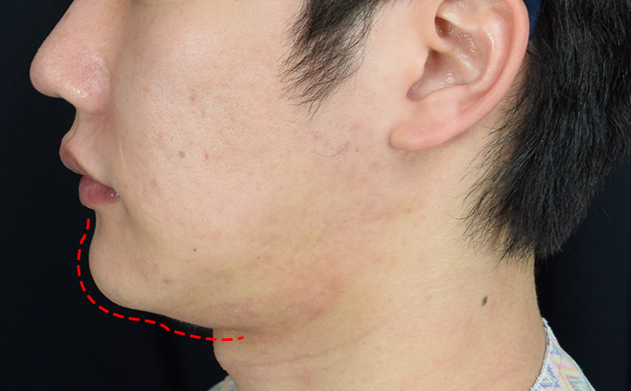 측면에서 턱선 라인을 따라 그려보면, 울퉁불퉁한 턱선 라인을 확인하실 수 있습니다.