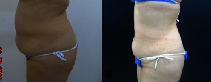 복부 전체에 바디리프팅 시술 후 비교한 모습인데요.