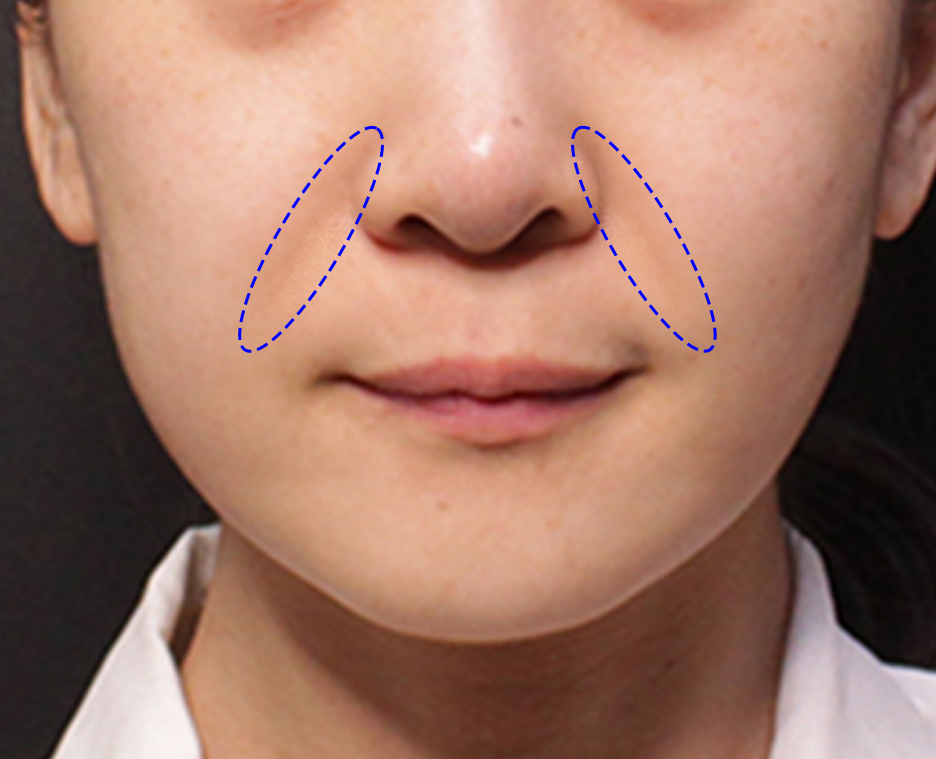 위 환자분의 경우 팔자주름뿐만 아니라 볼꺼짐, 다크서클 등 다양한 얼굴 고민을 가지고 계셨는데요.