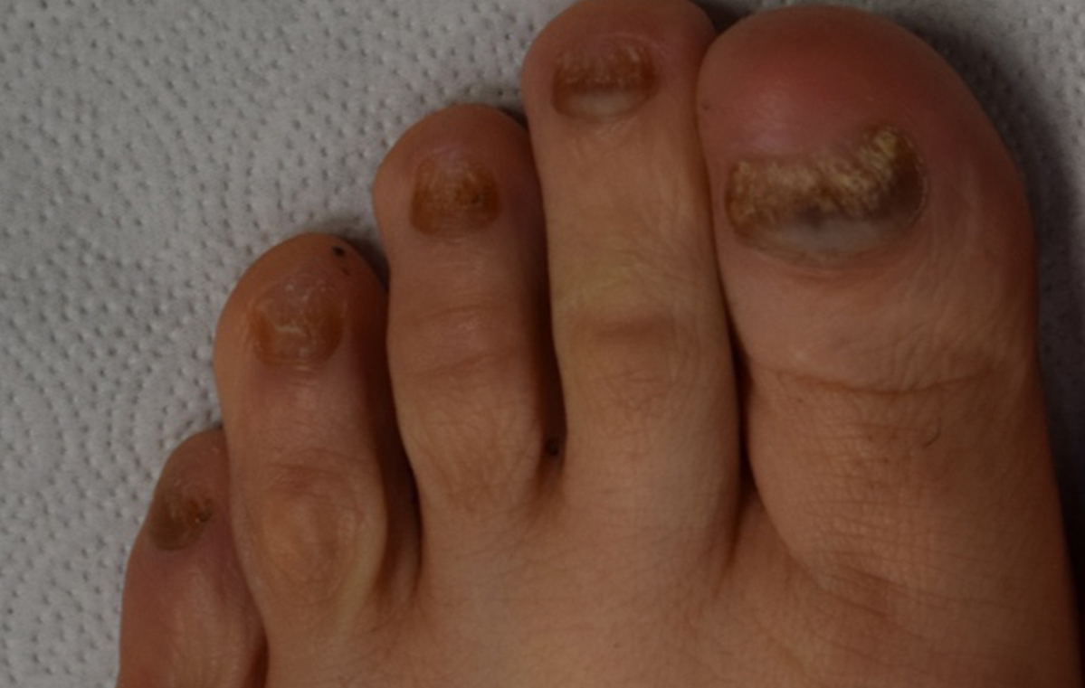 위 환자분의 경우 발톱의 변형 및 변색이 심해 약 19개월 동안 치료를 진행했는데요. 처음에는 경구약, 바르는 연고 등 치료 방법들을 시도해봤지만 큰 효과를 보지 못하고 병원을 찾아오신 케이스입니다.