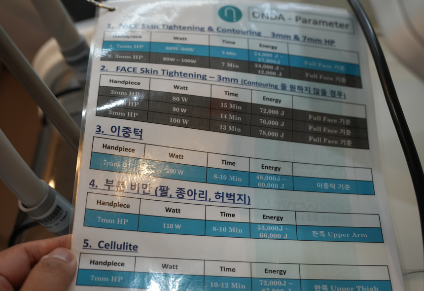 보통 이런 리프팅 장비는 제조사에서 시술 가이드라인을 제공하는데요.