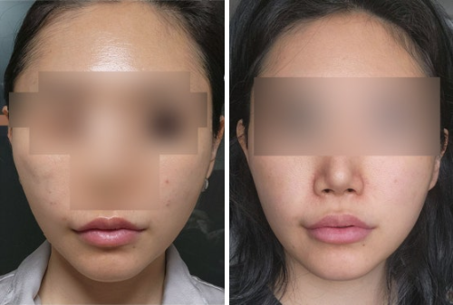 실제로 시술 전, 9일차 모습을 보면 얼굴 라인이 훨씬 정리된 모습이고, 정면에서 보이던 볼패임도 많이 완화된 것을 볼 수 있습니다.