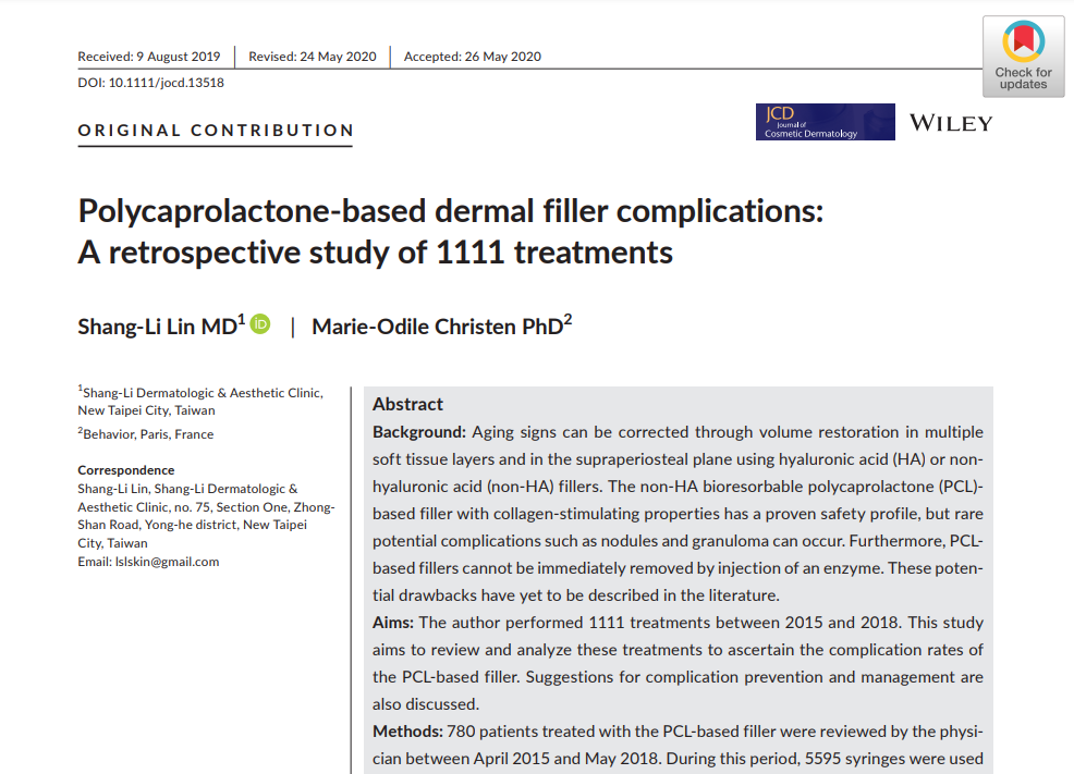 가져온 논문은 [Polycaprolactone-based dermal filler complications, PCL 기반의 필러인 엘란쎄에 부작용에 대한 논문]인데요.