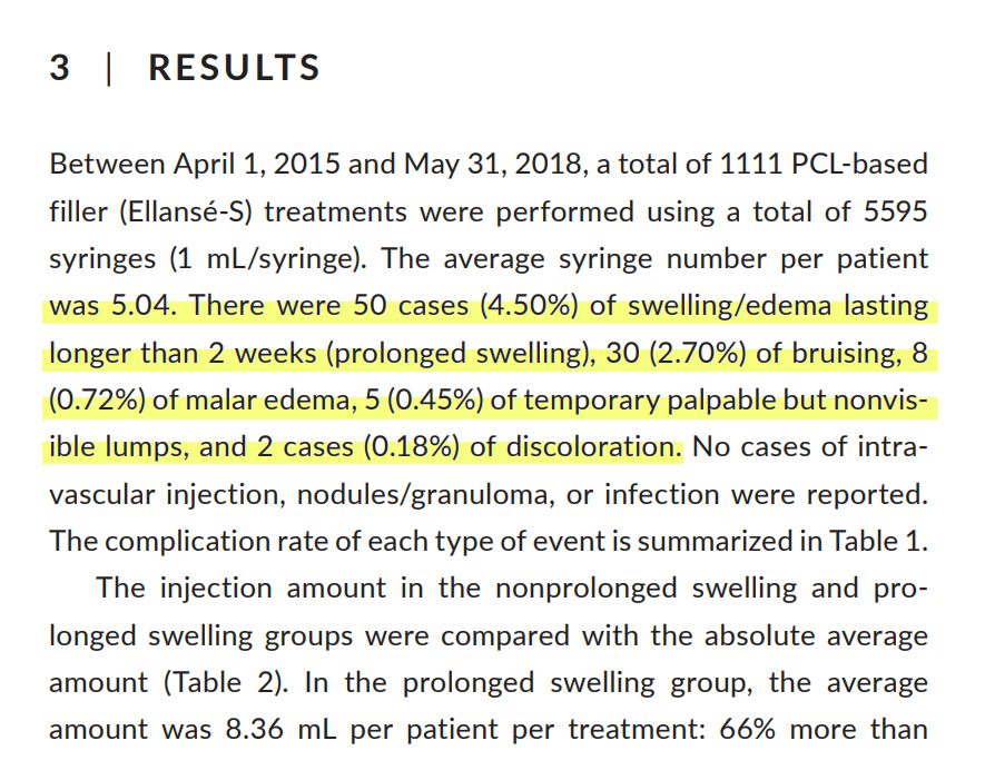 이번에 소개드린 논문에서는 PCL 성분의 콜라겐주사(엘란쎄)의 부작용 발생 가능성은 매우 희박하며, 심각한 부작용은 발생하지 않았으므로 안정성이 높은 시술이라고 결론을 지었는데요.