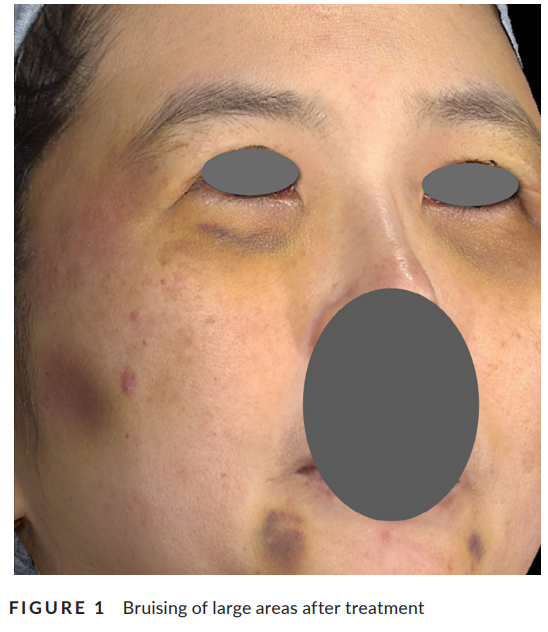 사실 멍은 주사 시술 특성상 발생할 수 있는 현상이라 부작용으로 구분하는 경우는 거의 없는데, 위 사례를 보면 넓은 부위에 멍이 크게 발생한 상태로 이렇게 심한 케이스는 '부작용'이라고 볼 수 있지요.