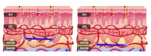 개인적으로 그동안 봐온 딤플 부작용 케이스들을 비교/분석해보면, 딤플을 유발하는 가장 큰 원인은 실을 주입할 때 피부 표피에 너무 가깝게 주입하는 경우인데요.