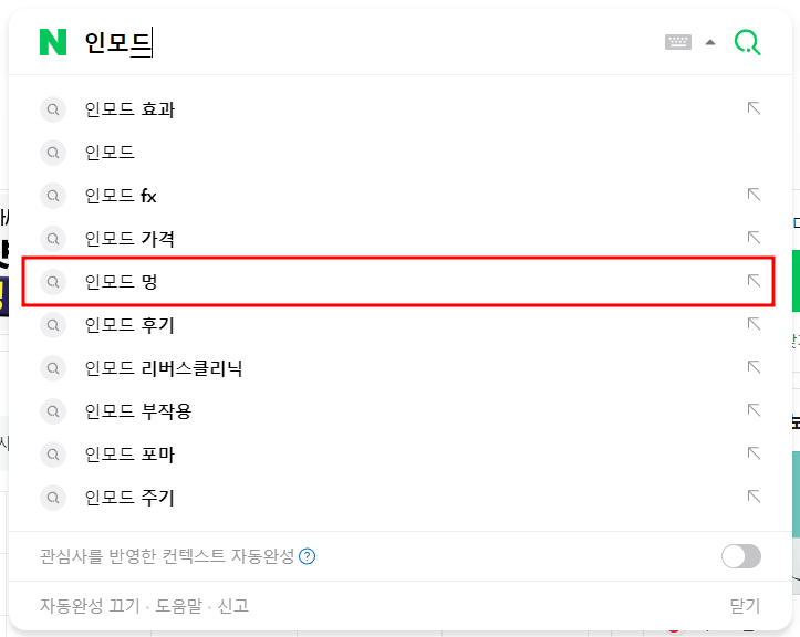 제가 인터넷에 '인모드' 라고 검색을 했더니, 연관된 검색어에 바로 '인모드 멍'이라는 검색어가 있더군요.