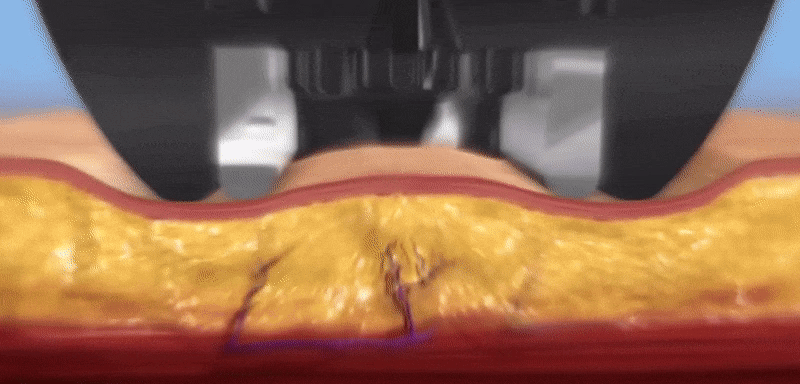 인모드 리프팅 FX는 에너지를 피부에 전달할 때, 에너지를 피하지방층까지 제대로 전달하기 위해 위와 같이 피부를 핸드피스와 밀착시키는 흡입(Vaccum) 과정을 거치게 되는데요.