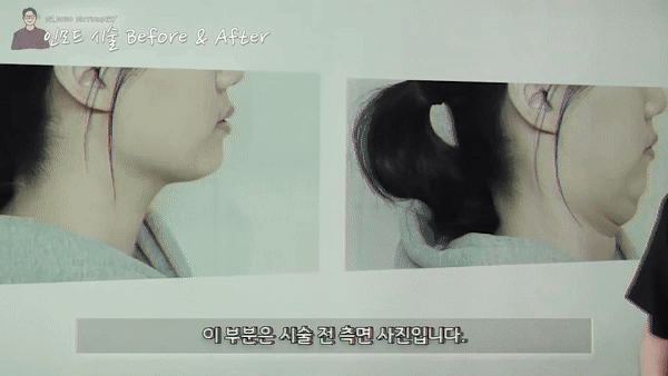 시술 전후로 보이실 수도 있을텐데.. 왼쪽 사진은 평소대로 사진을 촬영한 것이고 오른쪽 사진을 턱을 뒤쪽으로 당겼을 때 사진입니다. (턱을 당겼을 때 드러나는 지방 차이가 상당하지요? 성형외과에서 비포애프터로 이렇게 찍기도 합니다.;;)