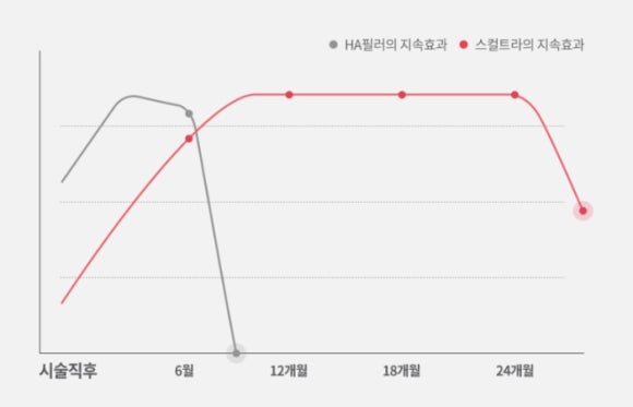 스컬트라를 필러와 비교하는 경우가 많은데, 일반적인 HA성분의 필러는 즉각적인 볼류마이징 효과가 있습니다.