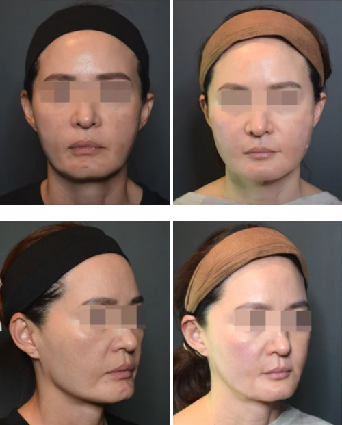 스컬트라 시술 3개월차 모습으로, 전반적으로 안면부 윤곽선이 많이 부드러워진 것을 볼 수 있는데 3개월 후에도 점진적인 변화가 발생합니다.