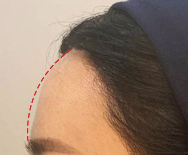 이렇게 이마 중앙 부분에 함몰이 있는 경우가 있다고 해봅시다.