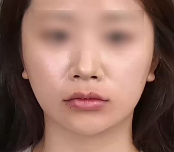환자분의 입술을 보면, 윗입술의 경우 좌우 대칭이 완벽하게 맞지는 않지만 어느 정도 맞는 모습이나 아랫 입술은 좌측에 비해서 우측 볼륨이 좀 더 큰 모습을 확인할 수 있습니다.