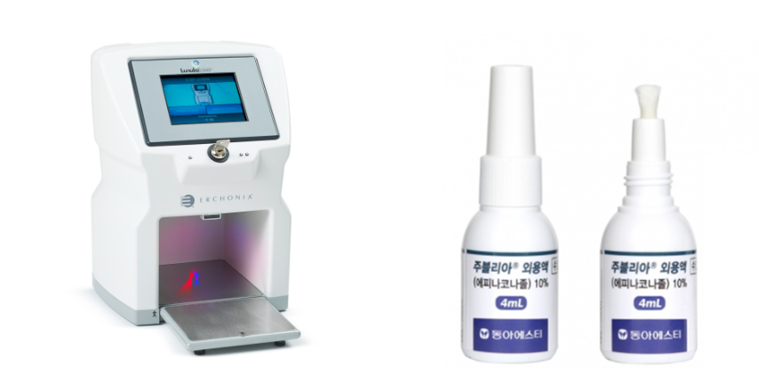 루눌라 레이저는 405nm, 635nm 두 가지 빛 파장을 이용한 비가열식 레이저로, 두 가지 빛 파장을 교차시켜서 무좀균 사멸 및 손상된 발톱 재생 효과를 기대할 수 있는 치료입니다.