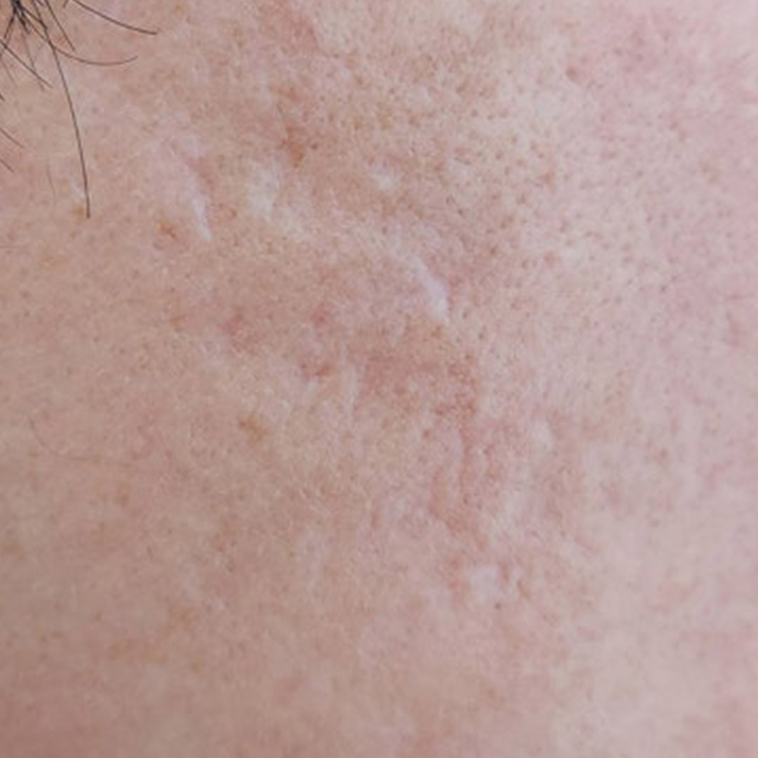 흉터가 완전히 사라지지는 않았지만, 1회 치료만으로도 상당히 긍정적인 결과를 보여주는 모습입니다.