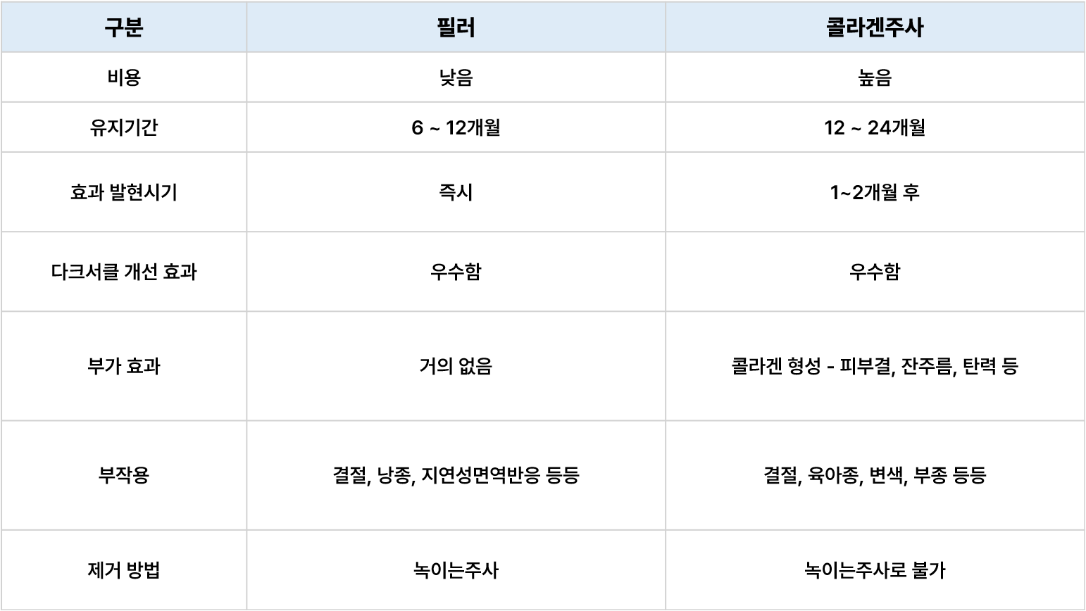 두 시술의 차이점을 표로 정리해봤습니다.