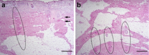 실제로 한 논문에서 울쎄라 리프팅 시술 후 조직검사를 진행한 사진인데요.