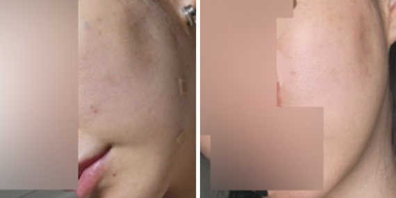 실제로 시술 전, 9일차 모습을 보면 얼굴 라인이 훨씬 정리된 모습이고, 정면에서 보이던 볼패임도 많이 완화된 것을 볼 수 있습니다.