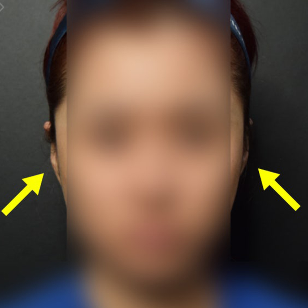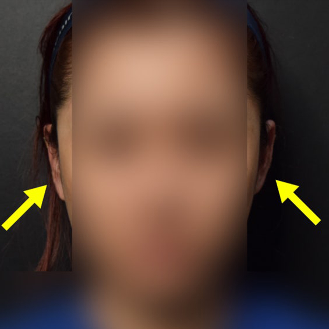 정면 사진을 보면, 환자분의 귀가 거의 보이지 않지요?