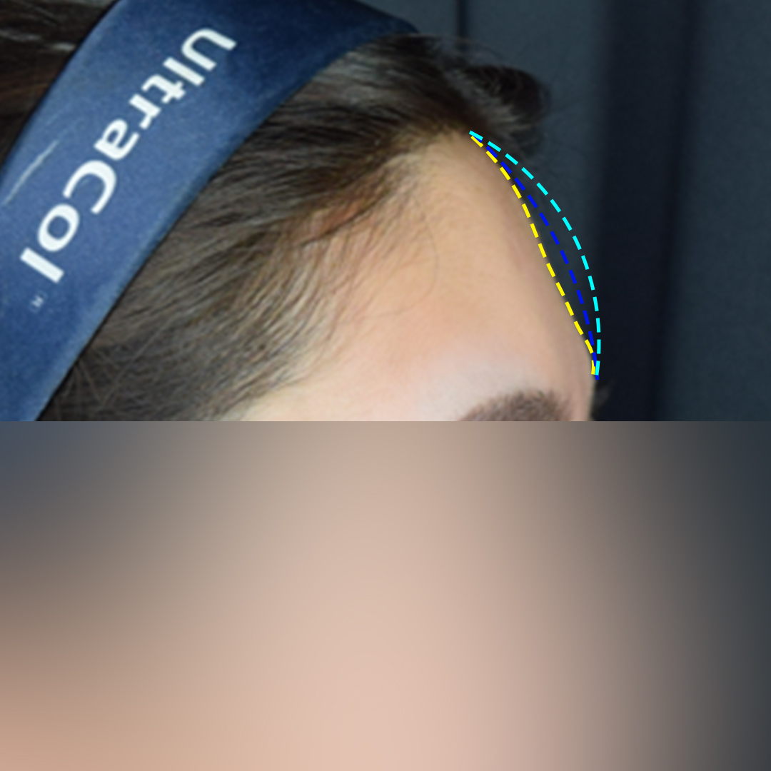 환자분의 이마 라인을 따라서 라인을 그려봤는데요.