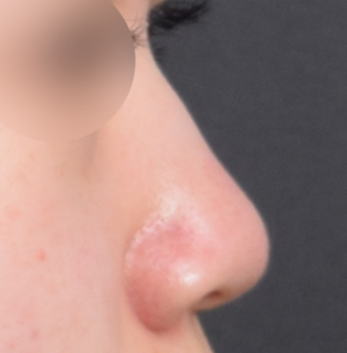 다만, 코끝 부위를 보면 확실히 옆으로 퍼졌던 코끝이 모여 올라간 것을 확인할 수 있는데요.