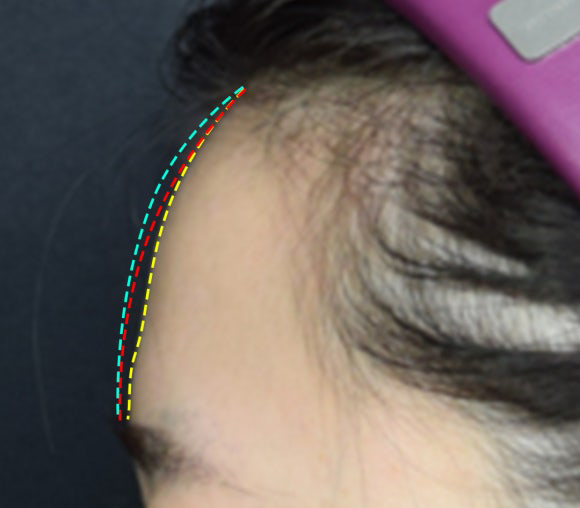 환자분의 이마 라인을 그려보았습니다.