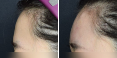 시술 전에 비해 엄청나게 볼륨감이 형성되진 않지만, 이마꺼짐이 너무 심해보이지 않고 자연스럽게 이마 라인을 개선해주는 목적으로 시술을 진행할 수 있습니다.