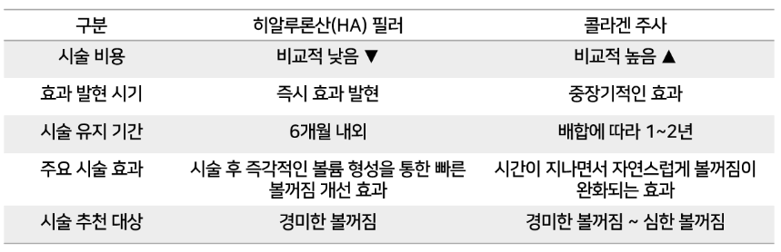 제가 히알루론산(HA) 필러와 콜라겐 주사의 차이점을 표로 정리해봤습니다.
