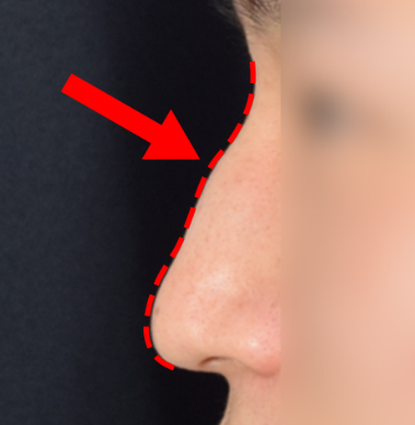 환자분의 사진을 보면, 콧대 중심부의 매부리혹은 돌출되어있고 상부 쪽은 움푹 꺼진 모습인데요.