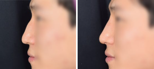 시술 전에는 돌출된 매부리 때문에 콧대 라인이 매끄럽지 않고, 인상도 강해보였으나 시술 후 매부리코 느낌도 사라지고 콧대도 한층 샤프해진 모습을 볼 수 있죠.