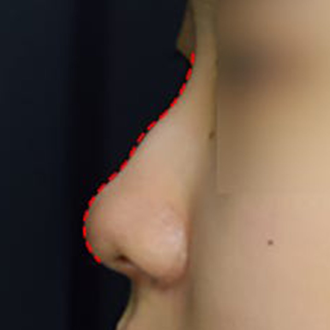 코의 문제점을 조금 더 자세하게 확인하기 위해 코 라인을 그려보았는데요.