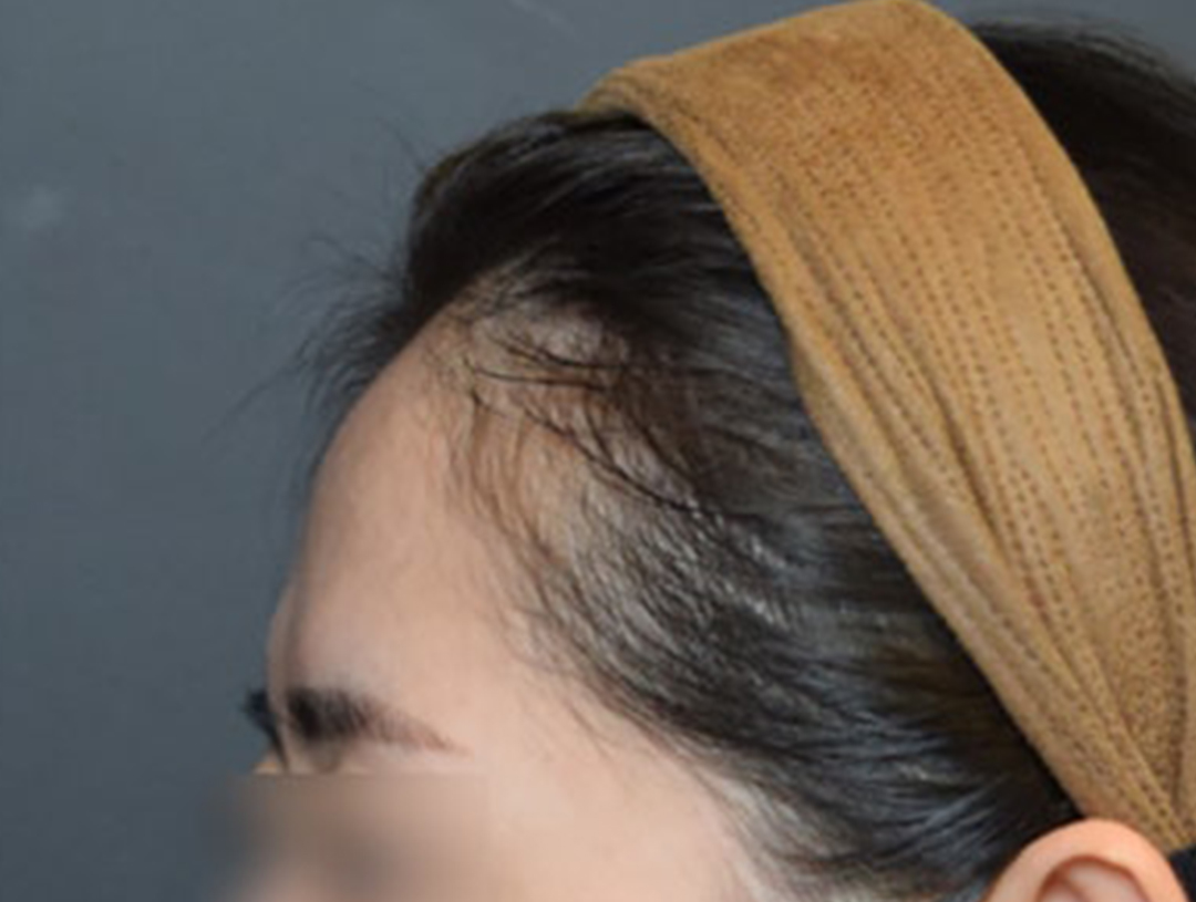 측면 이마 라인의 굴곡이 많이 줄어들고 매끄럽게 라인을 형성한 모습을 확인하실 수 있습니다.