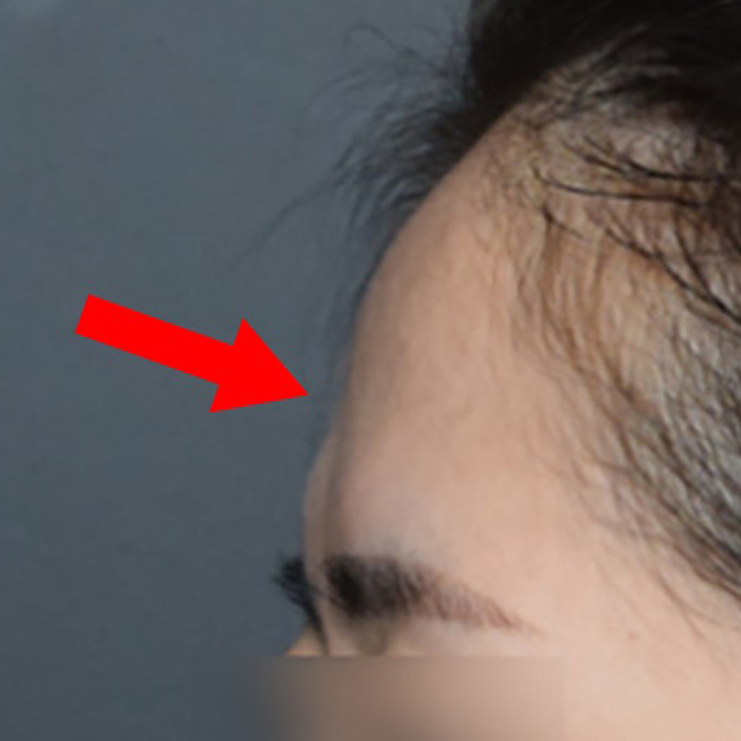 사진을 보면, 이마 중심부가 움푹 패이고 눈썹 위의 안와골이 돌출되면서 이마 라인이 전체적으로 울퉁불퉁한 모습을 볼 수 있는데요.