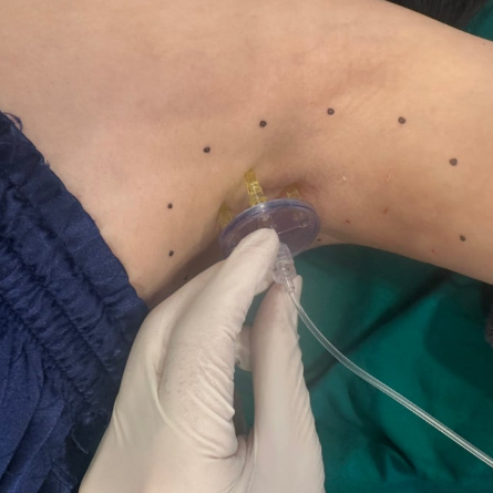 시술에 들어가기 앞서, 국소 마취를 통해 시술 중 통증이나 불편감을 줄여주는 과정을 거치는데요. 미라드라이의 경우 강력한 열에너지를 이용해 땀샘, 모근 등을 파괴시키므로 꼼꼼한 마취가 매우 중요합니다.