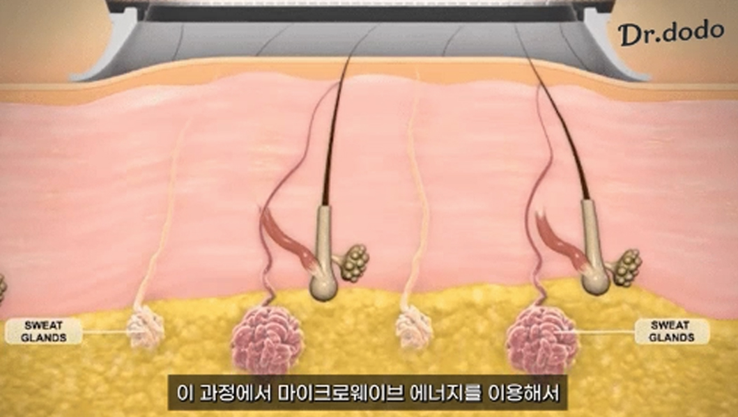 미라드라이는 극초단파(Microwave)를 이용해 피부 속 땀샘, 피지선, 냄새샘, 모근 등을 파괴해주는 시술인데요.