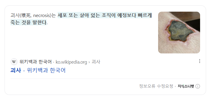 괴사라는 건, 피부가 죽는 것(썩는 것)을 말합니다.