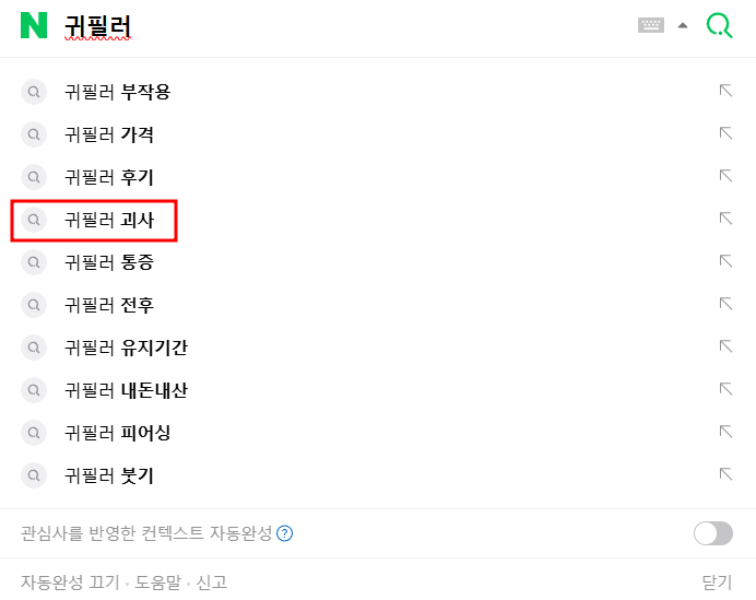 실제로, 귀필러를 검색해보면 연관된 단어로 '귀필러 괴사'가 나올 정도로 많은 분들이 궁금해하는 부작용 중 하나인데요.