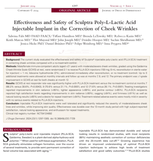 [논문] Effectiveness and Safety of Sculptra Poly-L-Lactic Acid Injectable Implant in the Correction of Cheek Wrinkles