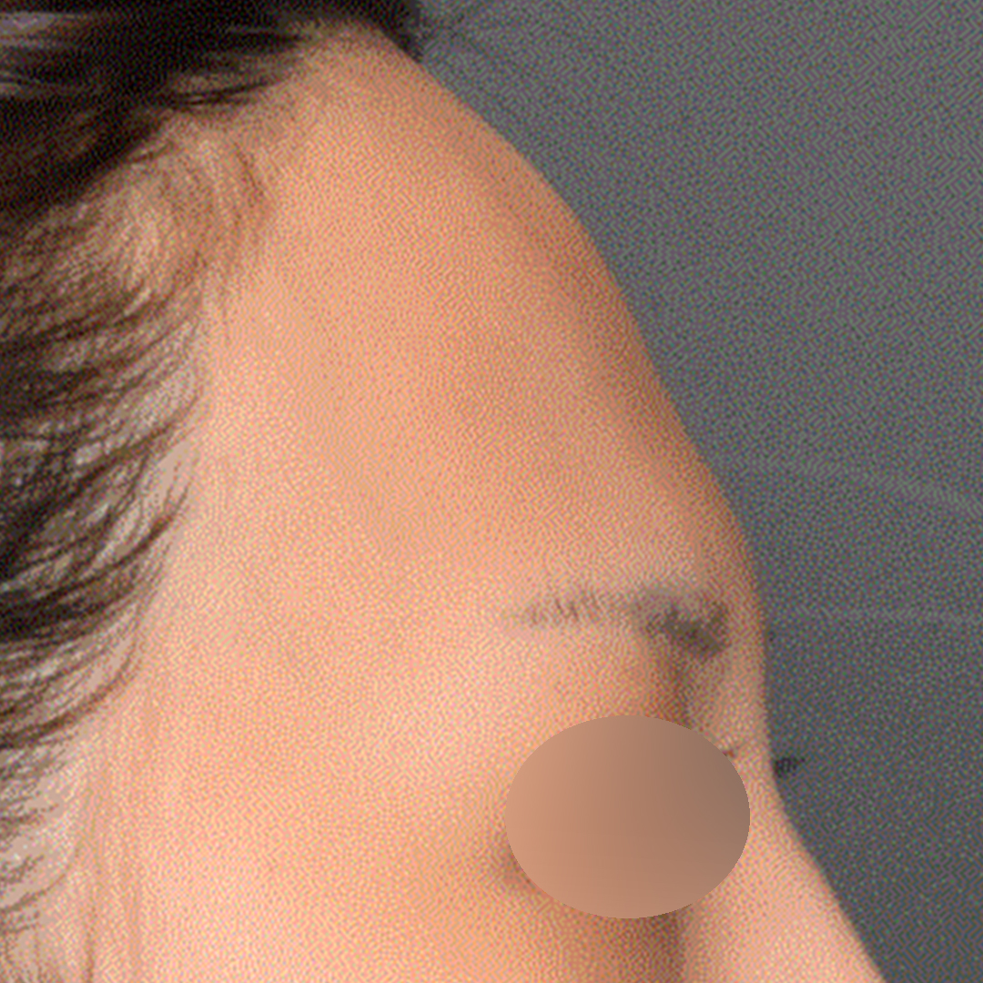 시술 전과 비교해보면, 단순히 꺼진 부분만 수복된 것이 아니라 전체적으로 이마의 볼륨감과 입체감이 크게 개선된 모습을 확인하실 수 있을 텐데요.