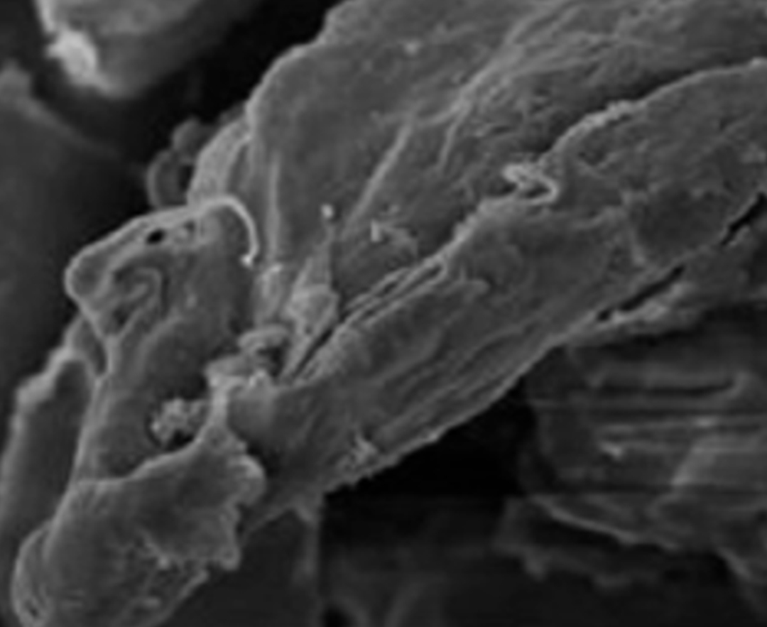 쥬베룩 입자와 완전히 다른 형태를 보여주고 있는데요. 스컬트라는 입자가 굉장히 거칠고, 불규칙한 형태를 띄는 것이 특징입니다.