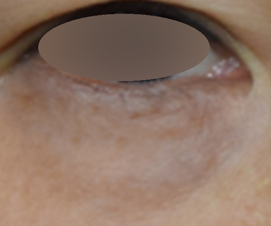 몽고주름 쪽 흉터도 많이 좋아졌을 뿐만 아니라, 눈밑을 자세히 보면 자글자글한 잔주름도 많이 개선된 모습을 볼 수 있습니다.