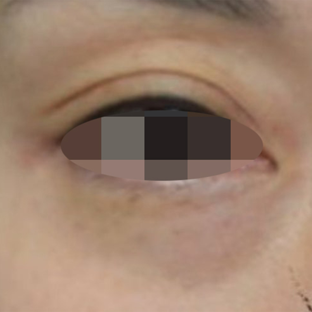 위 환자분의 경우, 눈밑의 패인 면적이 상당히 넓고 다크서클도 심한 상태여서 간단한 필러 시술만으로는 개선이 어려운 상태로 판단되었는데요.