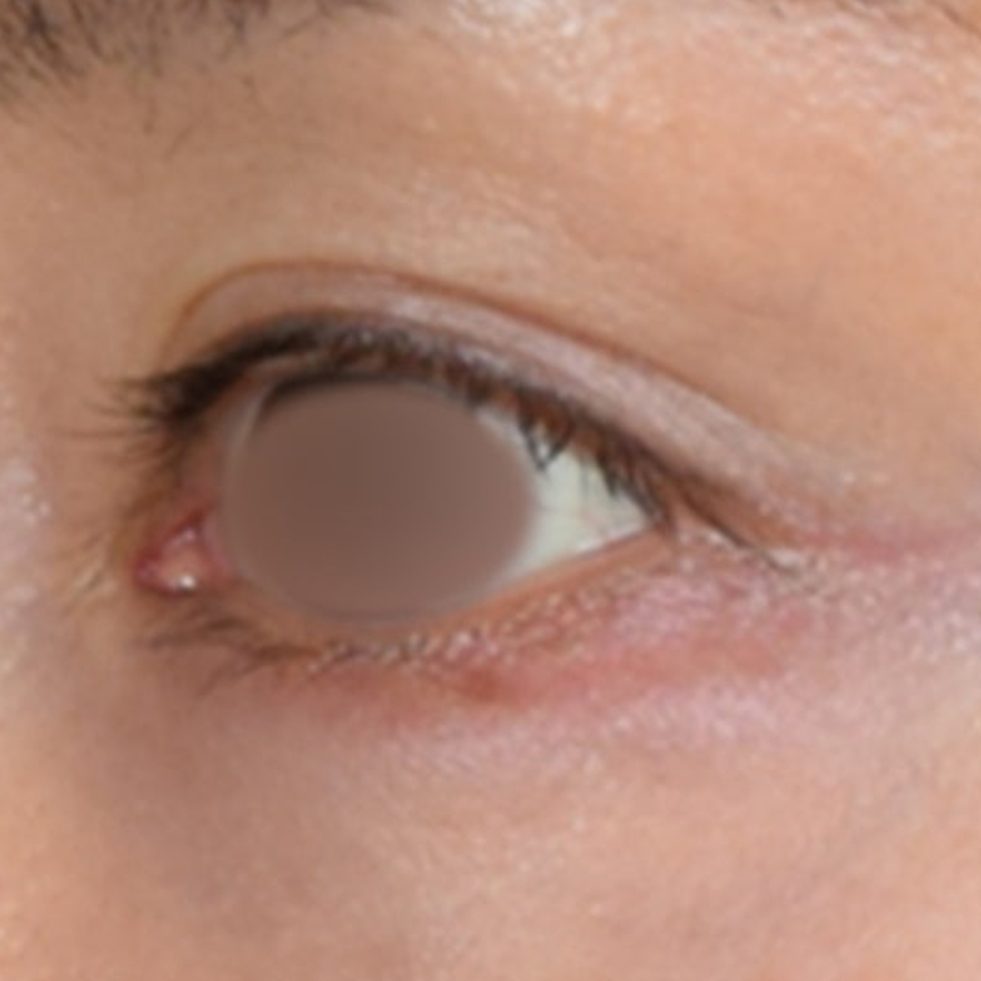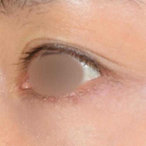 아직 처짐 정도가 심하지 않아서, 눈꺼풀 라인을 어느 정도 유지하고 있지만 이 상태에서 처짐이 심해지면 눈꺼풀에 덮여 쌍꺼풀 라인이 아예 보이지 않을 수도 있죠.