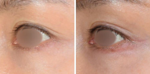 아직 처짐 정도가 심하지 않아서, 눈꺼풀 라인을 어느 정도 유지하고 있지만 이 상태에서 처짐이 심해지면 눈꺼풀에 덮여 쌍꺼풀 라인이 아예 보이지 않을 수도 있죠.