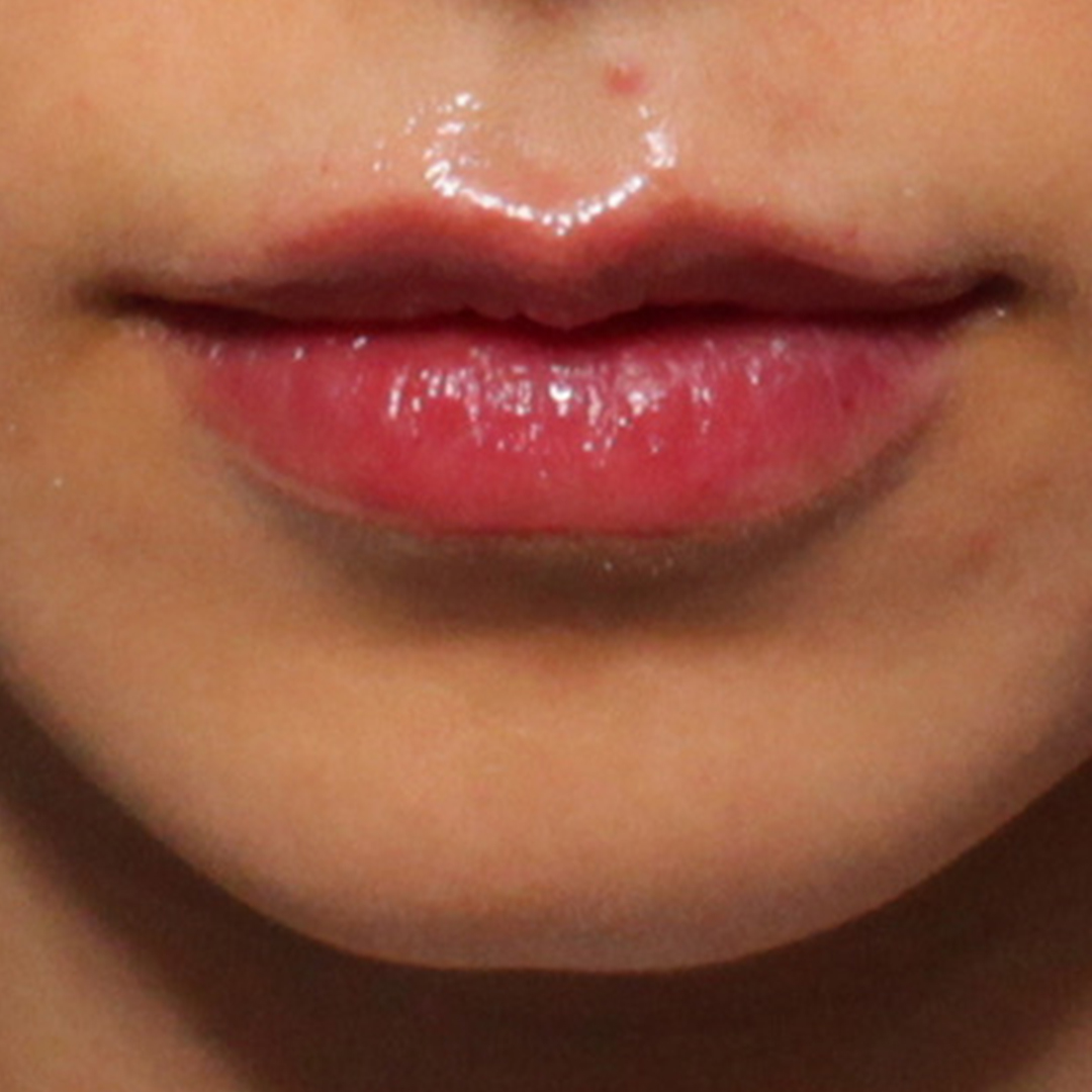 위 환자분의 경우, 입술의 전체적인 형태나 윤곽에는 큰 문제가 없었지만, 윗입술에 비해 아랫입술의 볼륨이 부족한 상태였습니다. 이로 인해 입술의 상·하 비율이 다소 불균형하게 느껴졌고, 좌우 비대칭도 약간 동반된 모습이었고요.