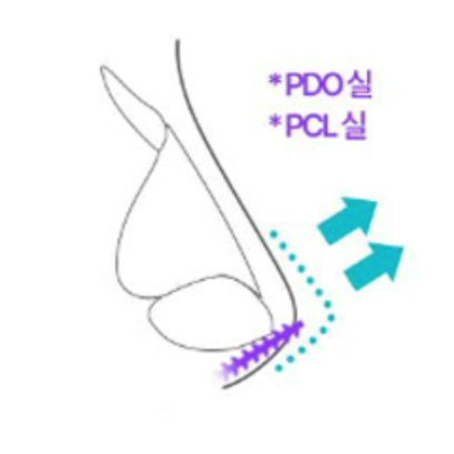 하이코의 경우 PDO, PCL 등 여러 성분의 실이 있고 이를 활용하면 필러 퍼짐없이 낮고 짧은 코끝을 개선해줄 수 있습니다.